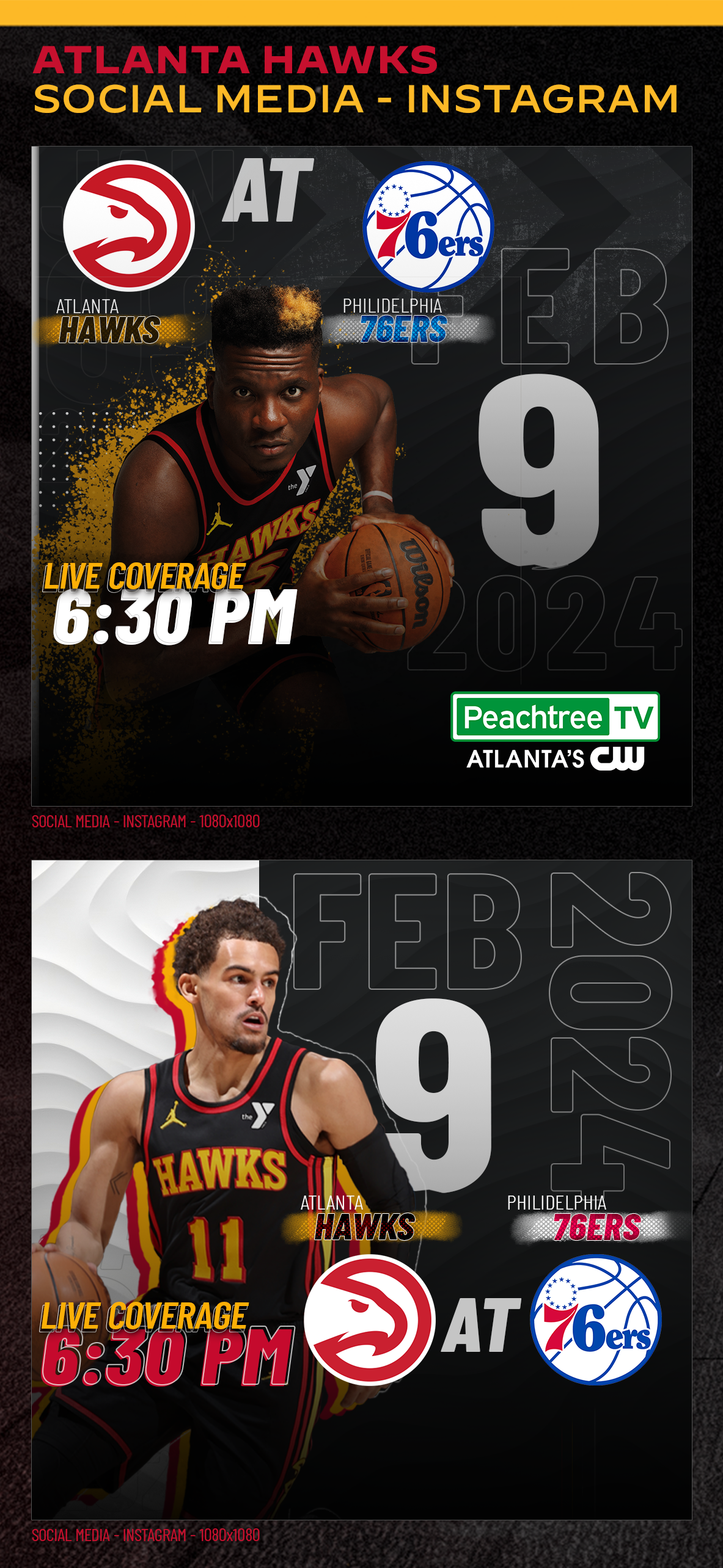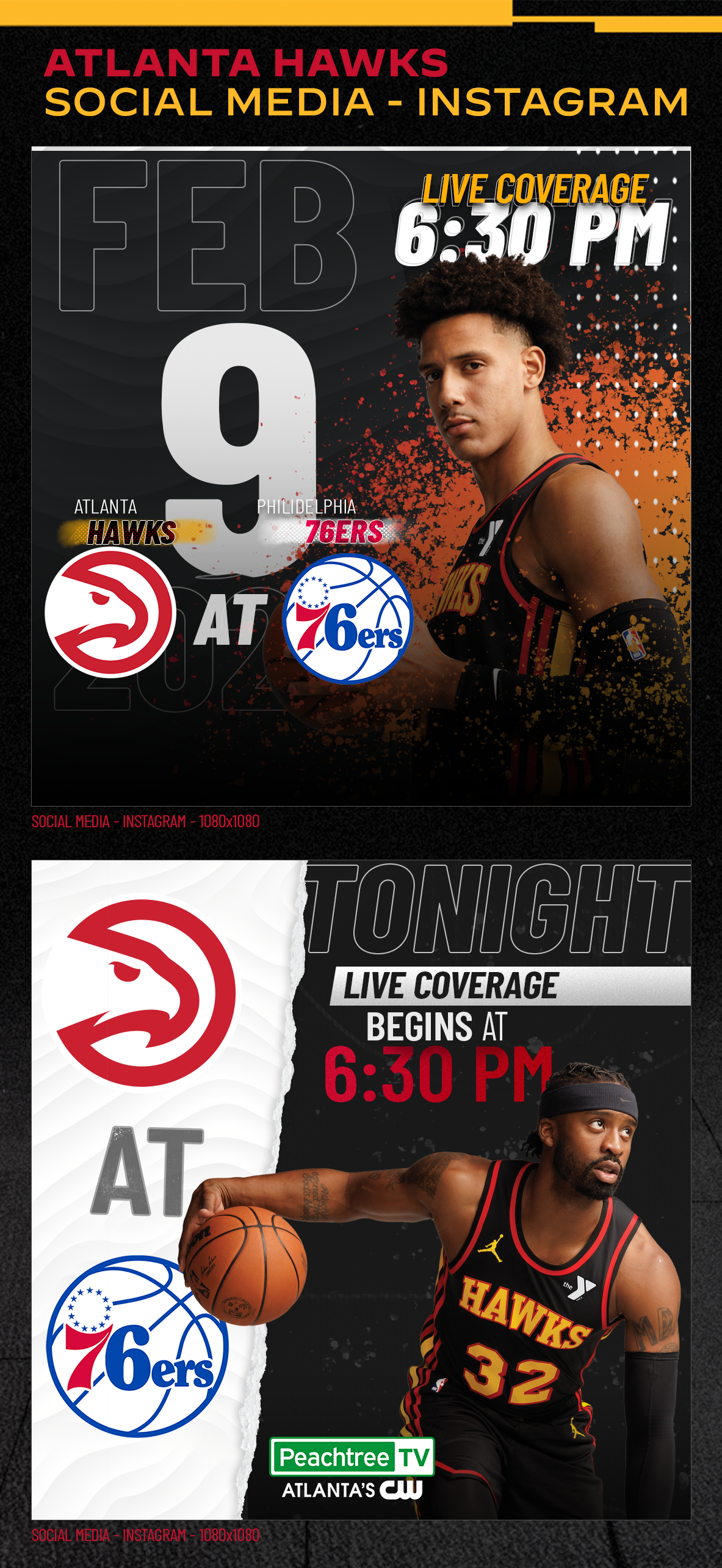 Objective: Design a variety of web and social media assets that advertise Atlanta Hawks games featured on Peachtree TV and/or Peachtree Sports Network (PSN).
